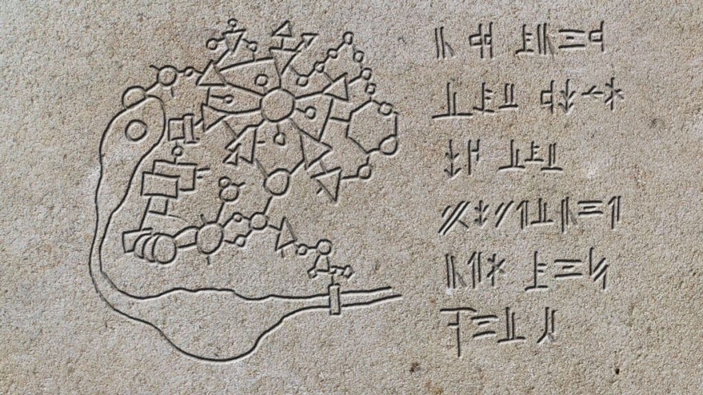 Ich hatte mir extra ein kleines Alphabet zurecht gekritzelt, das in Verbindung mit der Karte benutzt werden kann und uns in Zukunft noch öfter begegnen wird. Wer weiß, vermutlich wird keiner der Helden in dieser Folge herausfinden, was dort auf zwergisch geschrieben steht, aber das ist ok, mit etwas Zeit und… oh, Amon kann jede Schrift lesen. Nun, das macht die Sache deutlich einfacher als ich dachte. Da hätte ich mir kein sinnvolles Alphabet überlegen müssen. Aber was solls, ist ja cool, dass so auch dieser Skill mal zum Einsatz kommt. Und die Karte hat vermutlich für sich schon für genügend Verwirrung gesorgt. Wer weiß, wo die Gruppe sich gerade befindet?